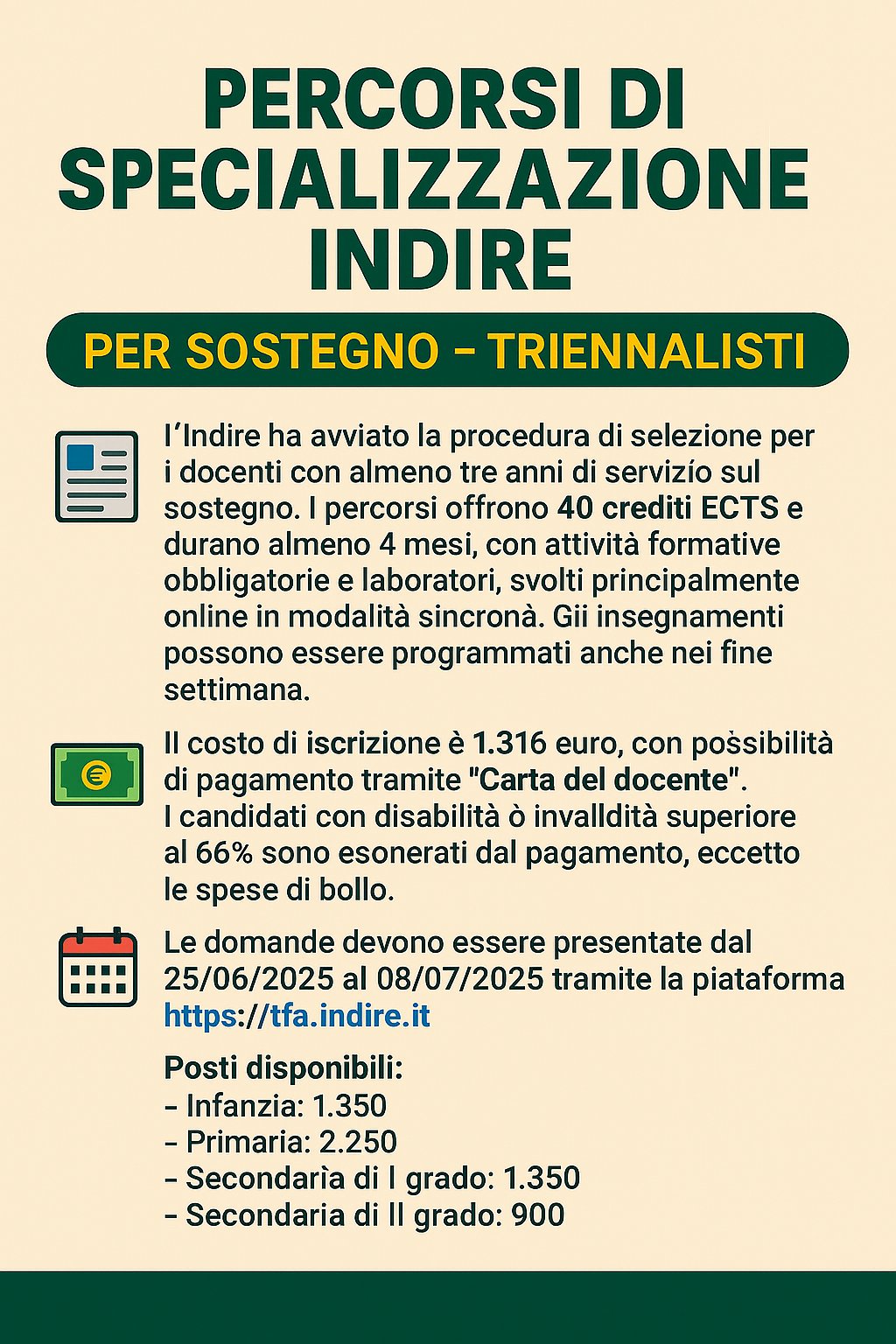 Le domande devono essere presentate dal 25/06/2025 al 08/07/2025 tramite la piattaforma https://tfa.indire.it.