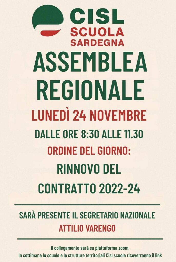 Assemblea sindacale regionale, organizzata dalla Cisl Scuola Sardegna, che si terrà il giorno 24/11/2025 dalle ore 8:30 alle ore 11:30, in modalità onlne, mediante la piattaforma ZOOM.