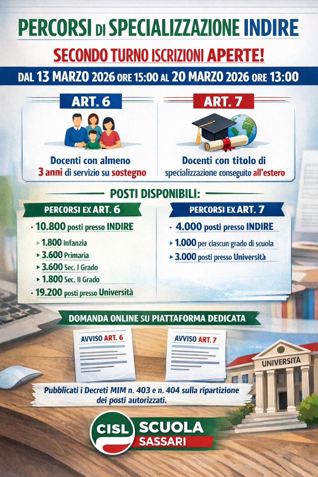 Avvisi per Art. 6 e Art. 7 pubblicati nei decreti MIM n. 403 e n. 404 per la ripartizione dei posti autorizzati.